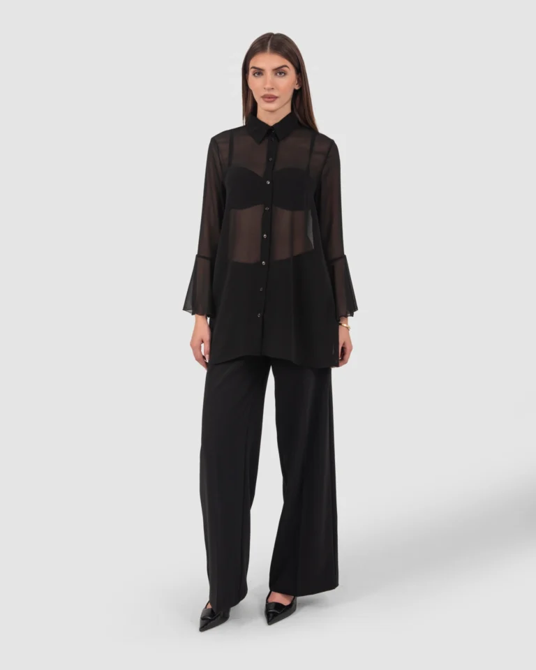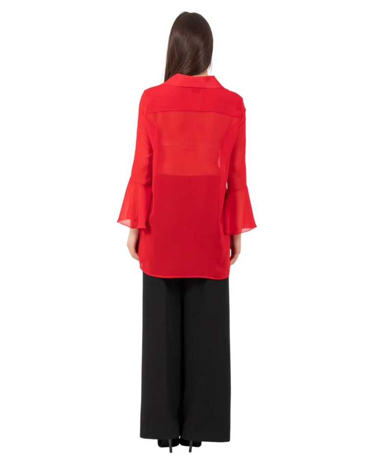 Polyester georgette shirt with ruffle details on the sleeves.