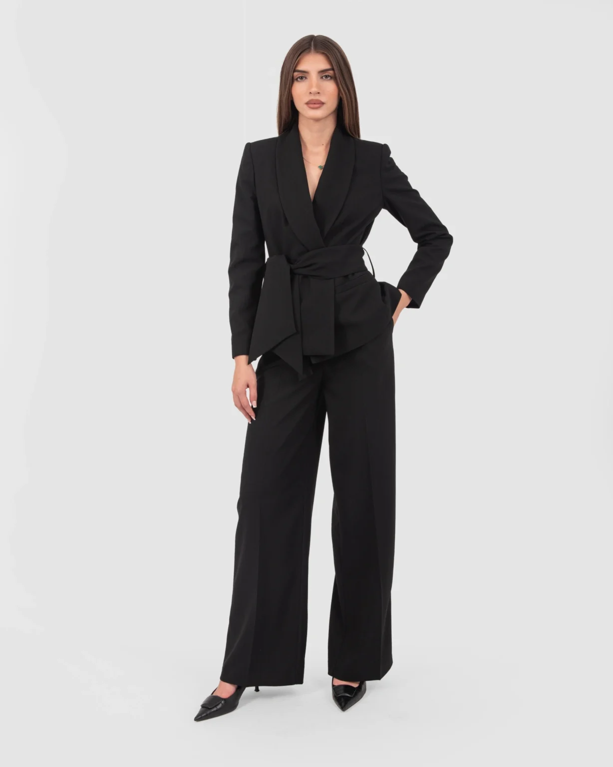 Trousers with two internal flap pockets and side menswear-style pockets.