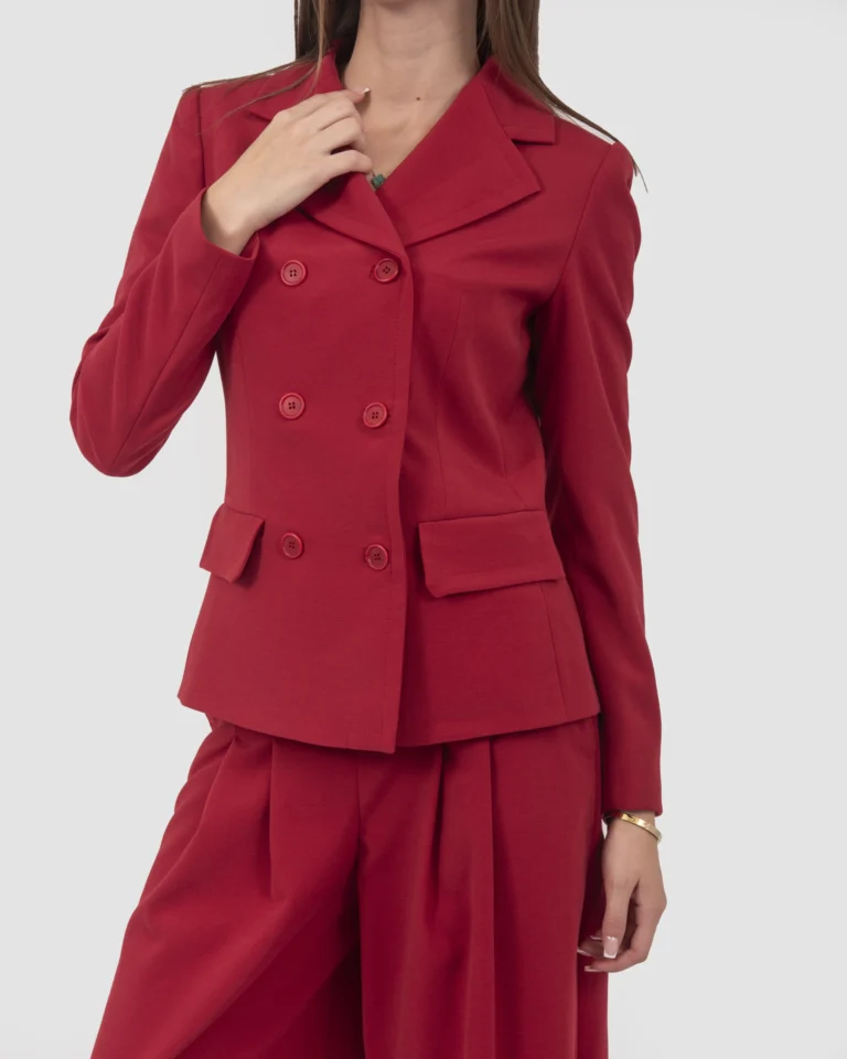 Double-breasted jacket with flaps and visible topstitching, made in canvas fabric.